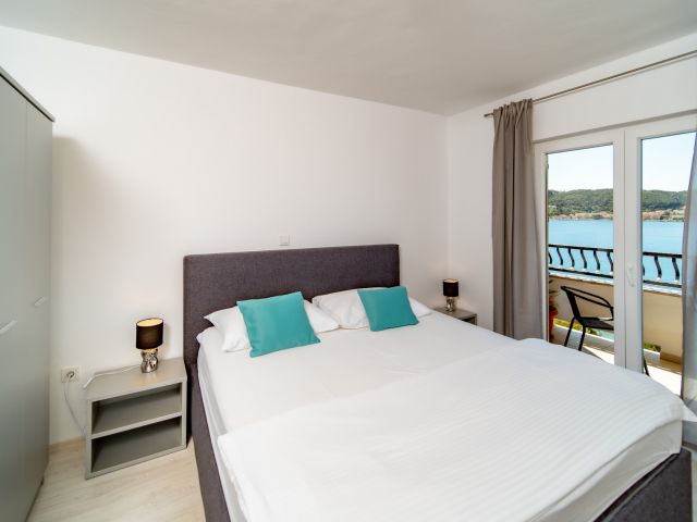 Raspolaže sa lijepo uređenim apartmanima za 4 i za 2 osobe. Privatnim parkingom i bazenom sa sunčalistem iza kuće. Mjesto za brod na privatnoj rivi. Riva je opremljena vodom i strujom koju naši gosti mogu koristit za potrebe svojih brodova.